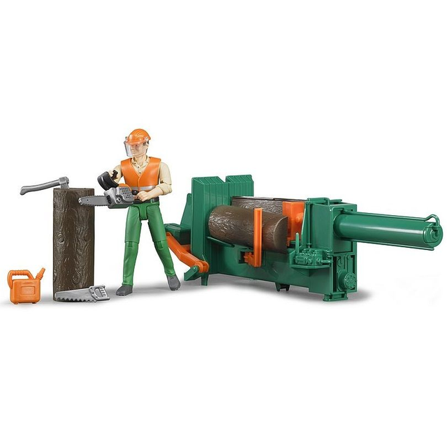 Bruder 62650 fandeuse a bûche tronçonneuse et personnage